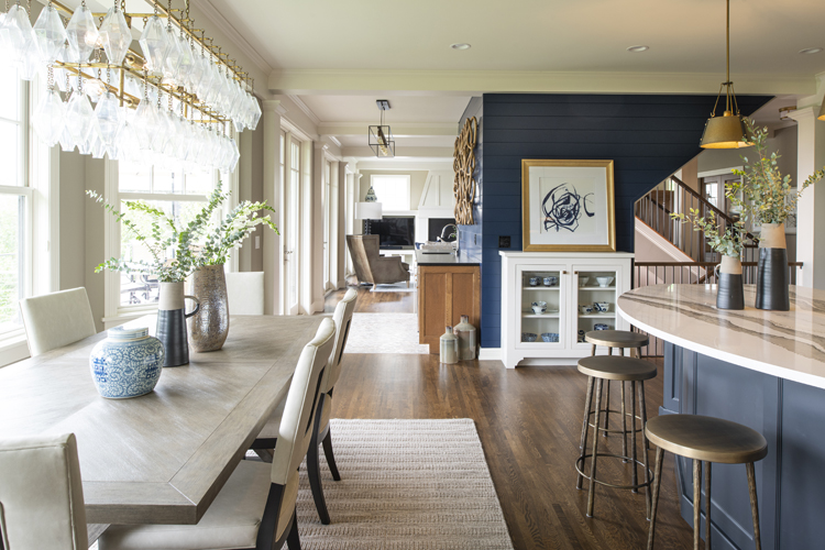 Thoughtful use of color, glamorous accents, and a modern design transformed this home from dated to sophisticated, cozy, and inviting. View additional photos from this remodel here. Thank you to Studio M Interiors for partnering with us on this project!